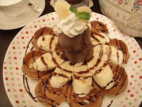 這是淑伶點的"巧克力冰淇淋香蕉鬆餅"